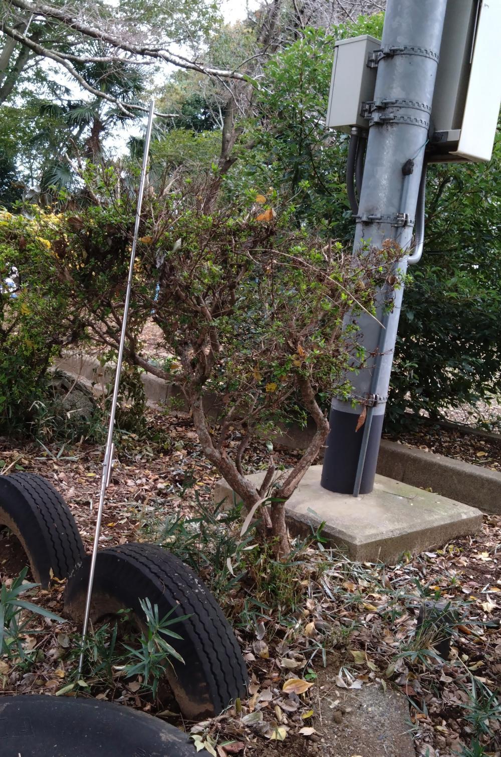 防災無線のアンテナのような物が地面