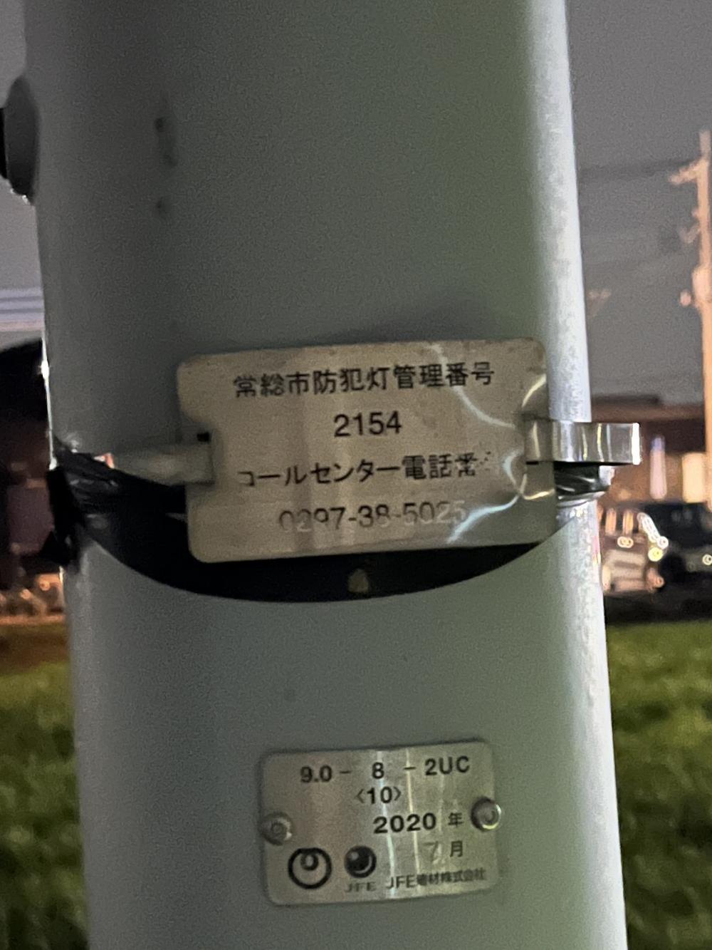以前も切れた電灯の件(防犯管理番号